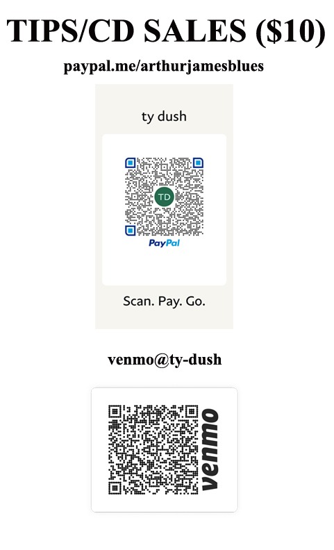 Or if you'd like to donate to Any & all things Arthur. Such as CD Production, strings, sticks, 9 volt Batteries, gas, lodging etc. Simply scan the paypal or Venmo code. Any donations of $15 or more gets you a CD mailed to you as a thank you. So make sure to include your mailing address on the form!